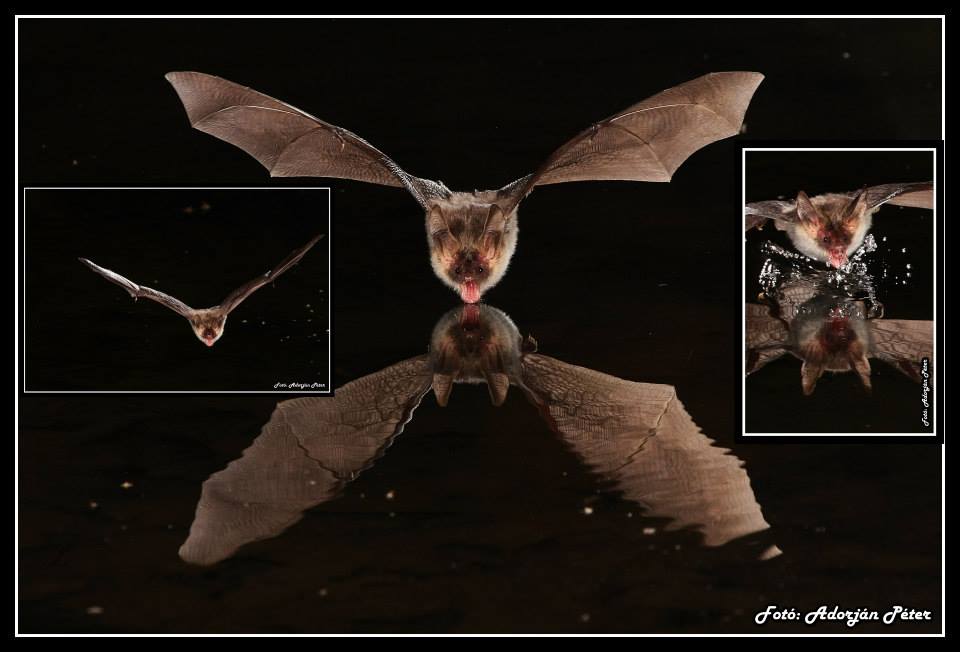 Nagyfülű denevér. A denevérek úgy isznak , mint pl. a fecskék, repülés közben. A képen látható faj erdőlakó. Tölgyesektől a montán bükkösökig előfordul. Kedveli a kis tavak , dagonyák, patakvölgyek közelségét. Hazánkban 1901 óta minden denevérfaj védett!
